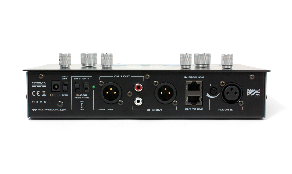 The Williams Sound IC-2 is an audio control center for simultaneous interpretation of one or more languages. As a stand-alone unit, it allows one or two interpreters to monitor floor or relay sources, activate microphone inputs, and route the interpretation signal to one of two language groups. Ideal for presentation-style conferences of up to 14 languages, where a floor and a single relay language are used. Can be used with Williams Sound FM, infrared and Digi-Wave™ transmitters, and Enersound FM transmitters for portable or fixed installations. Designed to meet international standards for portable interpretation consoles.