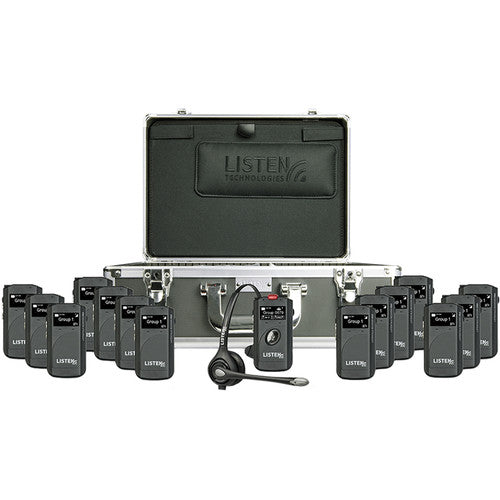 The ListenTALK GR16 System from Listen Technologies is designed for portable wireless one-way communications with one leader and fifteen participants and is well suited for tours, simultaneous interpretation, trainings, and more. The system is easy to set up via software and features a charging case, one transceiver with headset boom mic, and fifteen receivers. The GR16 offers an operating range of 328' indoors and up to 656' outdoors under ideal conditions.