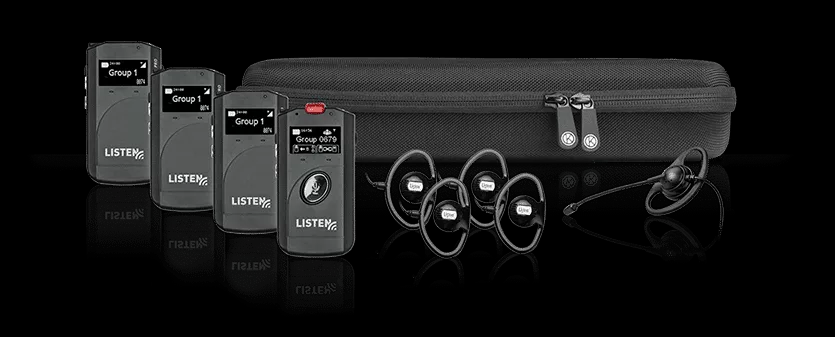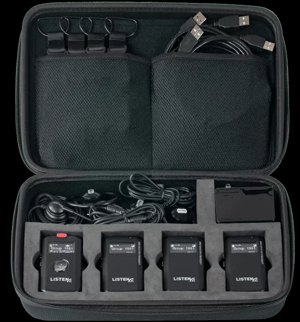 The ListenTALK GO! System comes pre-programmed and ready to use. Excellent for any portable one-way communications requirement including tours, simultaneous interpretation, training, etc.